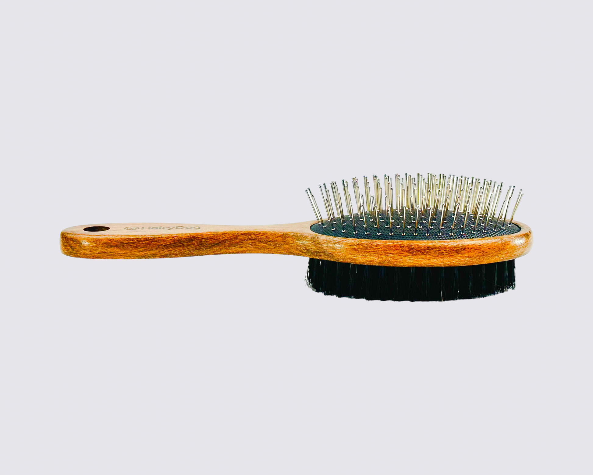 A smart-looking wooden and stainless steel multi-dog brush that can efficiently brush, massage, and polish your dog or cat's coat. The Brush is made with stainless steel needles with protective ball tips and premium beechwood.